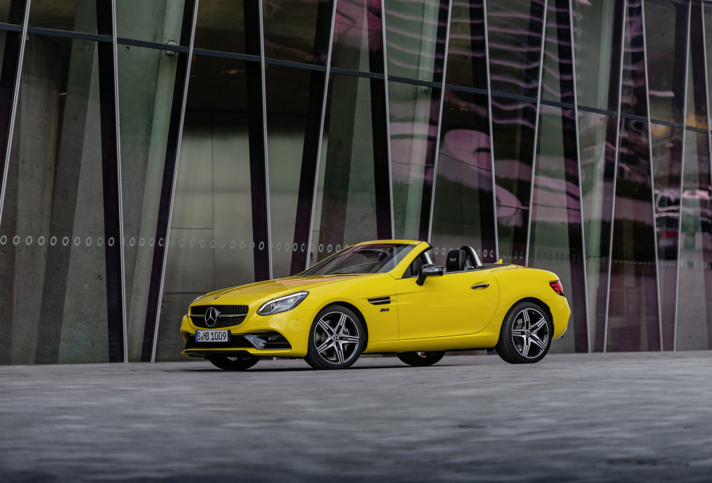 La primera aparición del SLK como vehículo de serie en 1996 causó sensación y constituyó el inicio de una nueva generación de roadster a nivel mundial. Por primera vez veía la luz un roadster compacto de Mercedes-Benz. Su techo retráctil rígido se alzó en nuevo referente en el segmento de los roadsters por su capacidad de combinar placer de conducción a cielo abierto y confort sin límite en días de lluvia, algo nunca visto hasta entonces. Para su lanzamiento, el SLK se vistió de un color poco habitual para Mercedes-Benz: amarillo Yellowstone. Como homenaje a ese estreno mundial, el modelo especial Final Edition del SLC sale a la venta en el color exclusivo amarillo sol. Este modelo especial con generoso equipamiento y detalles únicos en el interior constituye además la culminación de la actual generación de modelos. Llegará a los concesionarios del mercado español en verano, estando previsto para abril su inicio de pedidos.