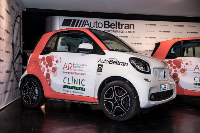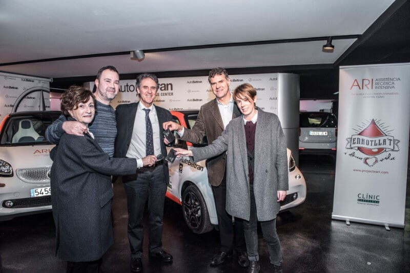 Xavier Beltran, director general de Auto Beltrán, concesionario oficial de Mercedes-Benz, ha hecho entrega de dos vehículos Smart al Proyecto ARI. Esta aportación garantiza una mejora asistencial para los pacientes con leucemia y trasplantados del Hospital Clínic de Barcelona. En el acto han estado presentes el director médico del hospital, Antoni Castells; el director del Instituto de Hematología y Oncología (ICHMO), el Dr. Álvaro Urbano, y el jefe de la Unidad de Atención Domiciliaria, el Dr. Francesc Fernández de l’Hospital Clínic.
